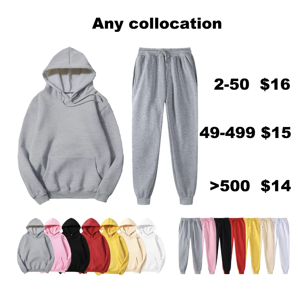 Оптовая продажа OEM высококачественных костюмов из двух частей с пользовательским логотипом, однотонный однотонный спортивный костюм с капюшоном, мужские комплекты спортивных костюмов/