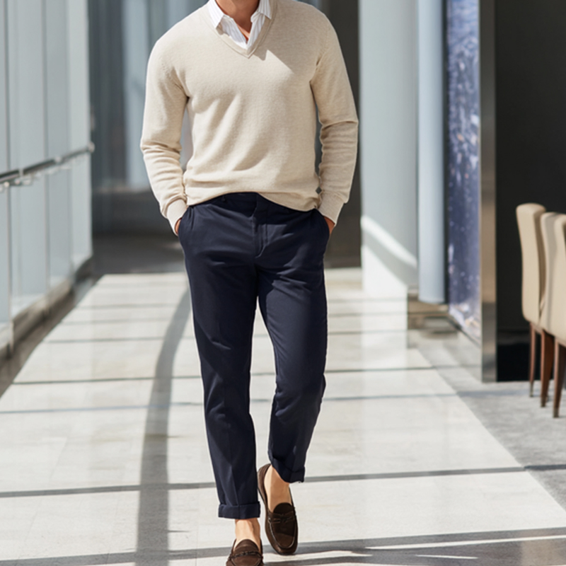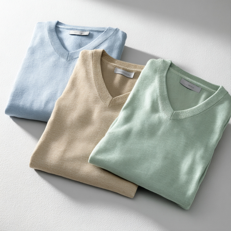 Мужской пуловер из льна и хлопка с V-образным вырезом prime, дышащий весенний свитер