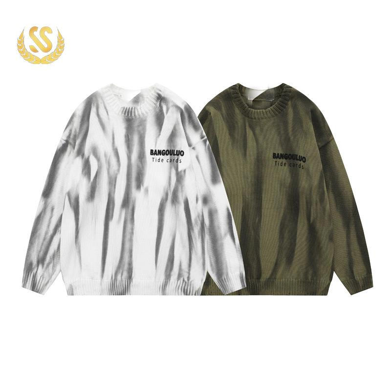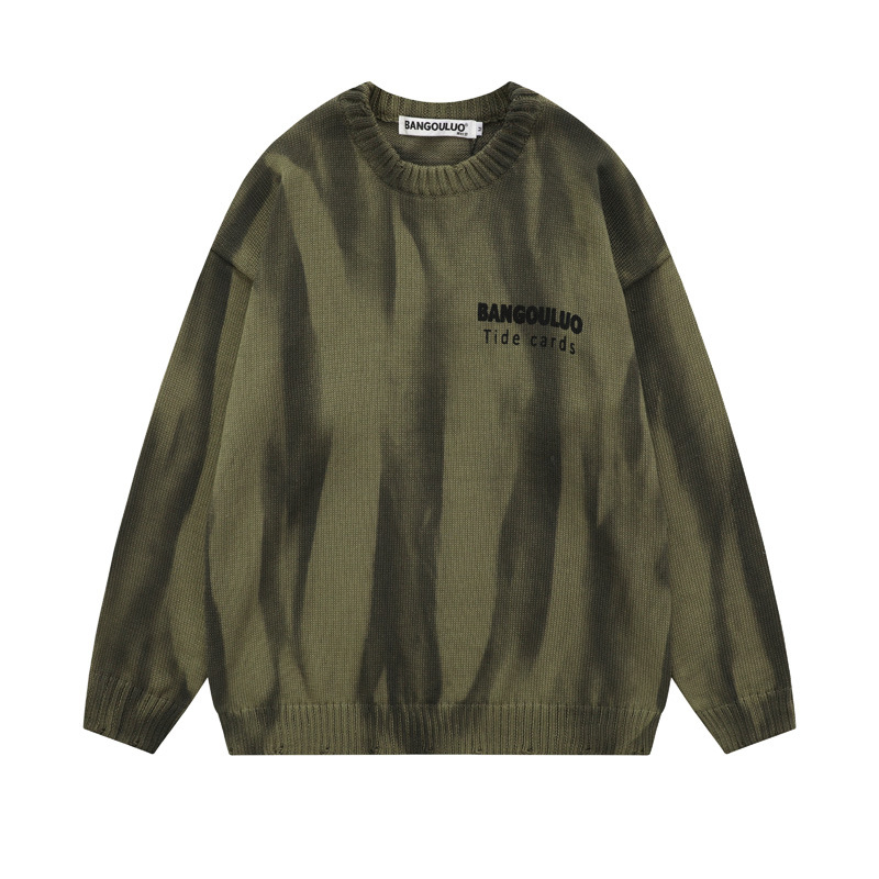 Вязаный хлопчатобумажный свитер с круглым вырезом и заниженным плечом от Tie Dye