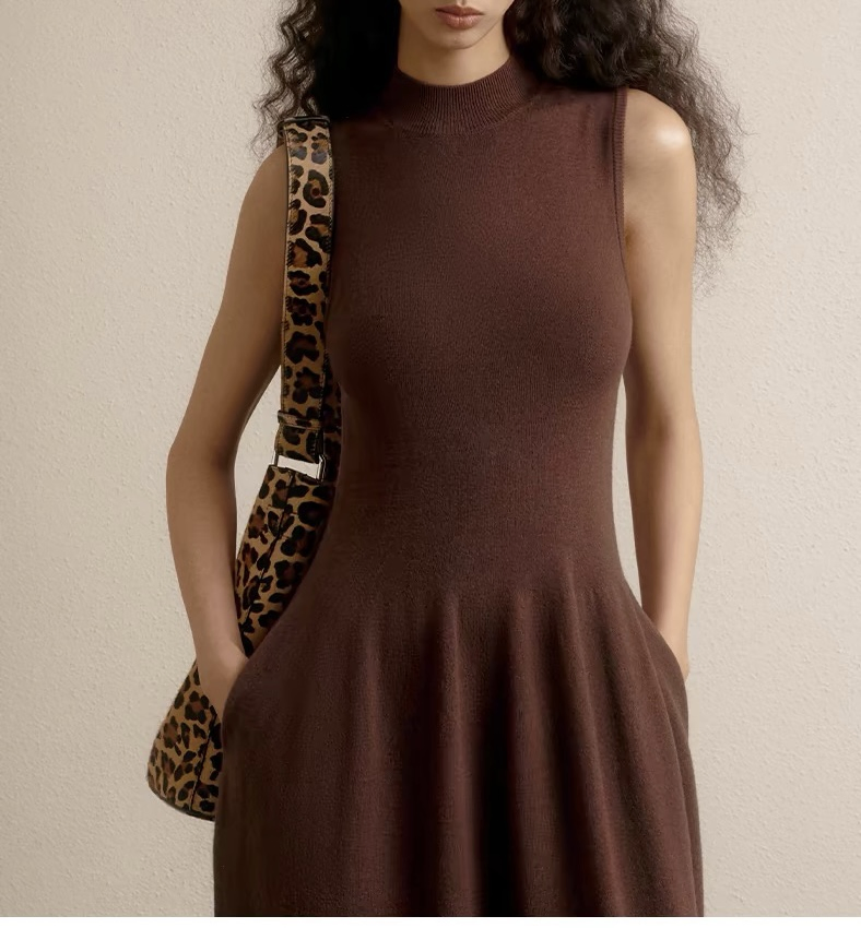 Вязаное шерстяное платье-водолазка Women&prime Temperament с высоким воротом, платье в форме бутона.