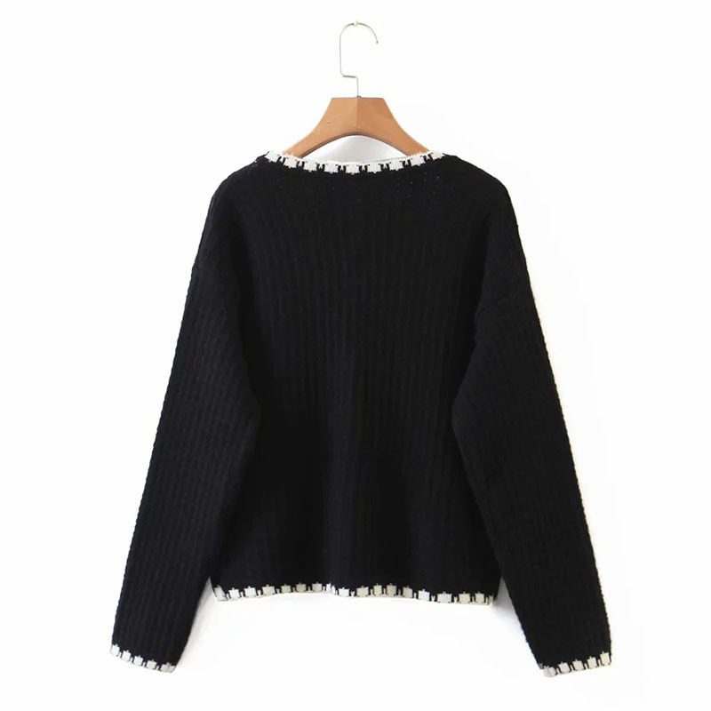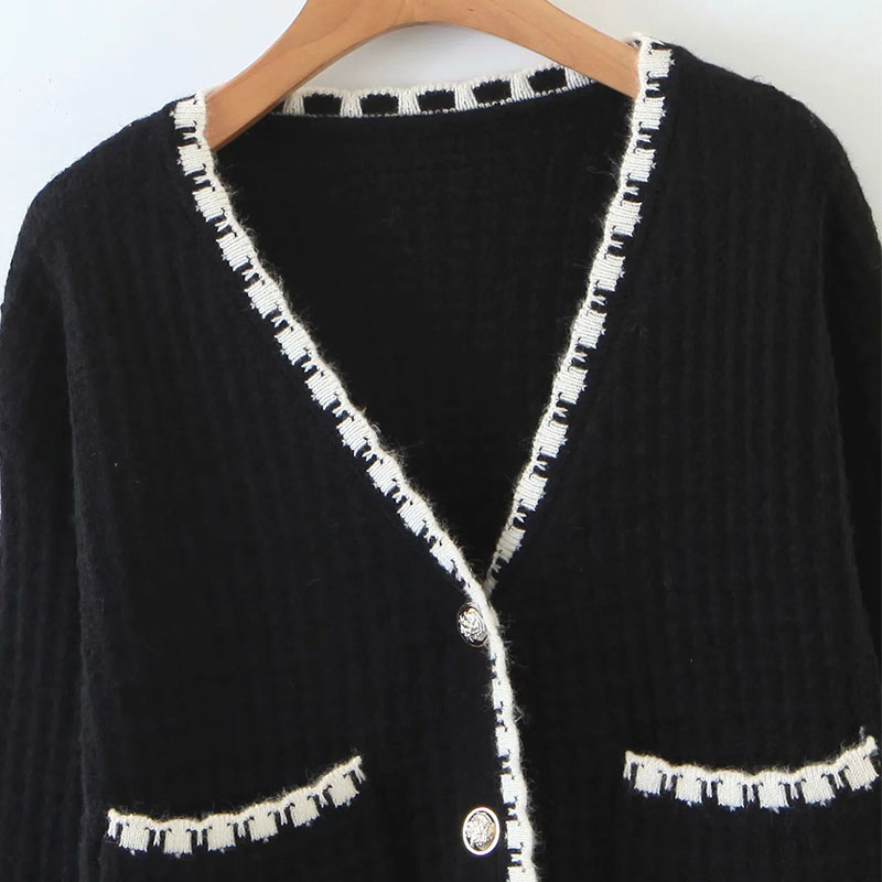 Женский белый кардиган с контрастным краем и дизайном свитера с длинным рукавом