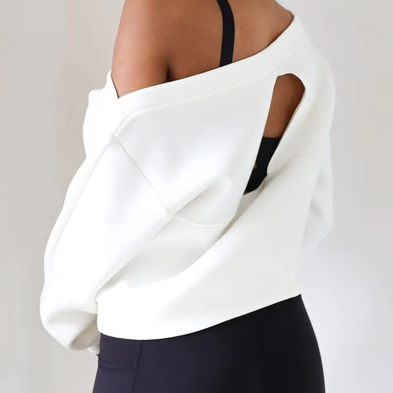 Однотонный пуловер с длинным рукавом и открытыми плечами, женская толстовка оверсайз из флиса 400 ГСМ на зиму