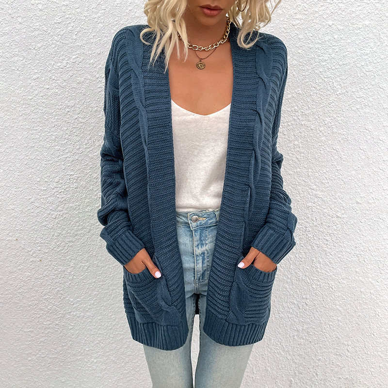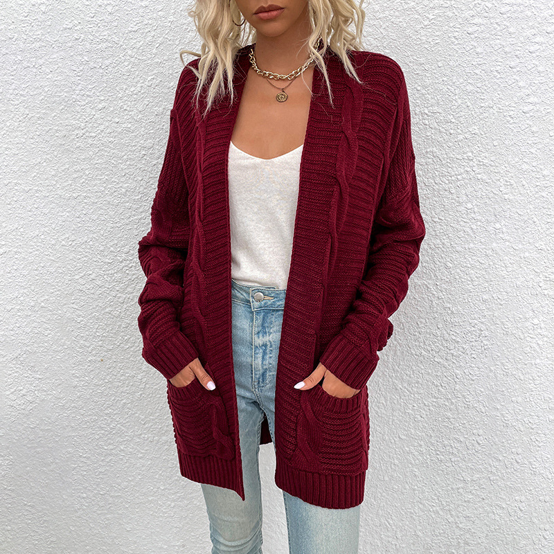 Осенне-зимний новый женский кардиган средней длины Twist Rope Sweater