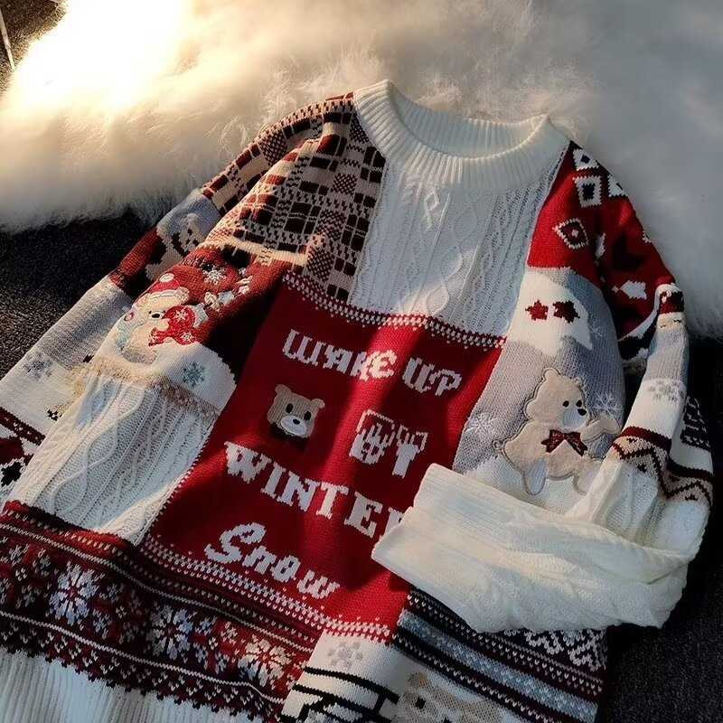 2024 Трикотажное изделие "Американское Рождество" плюс флис, утолщенный шерстяной свитер для мужской пары, водолазка, осенне-зимняя одежда