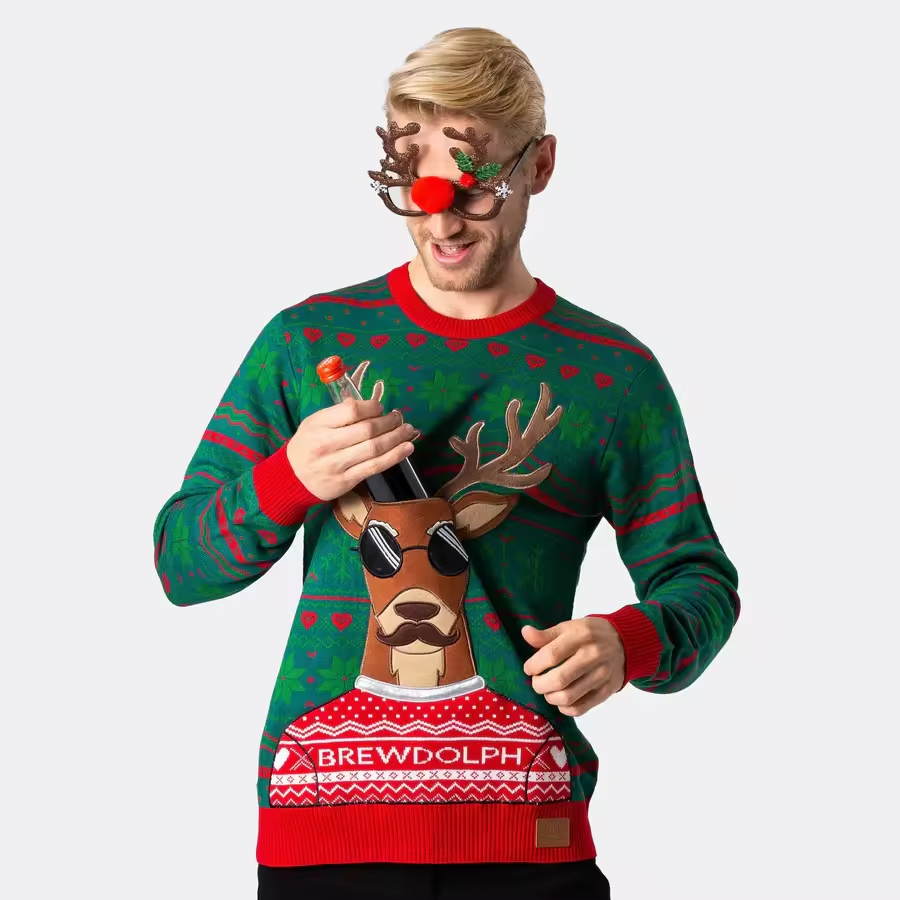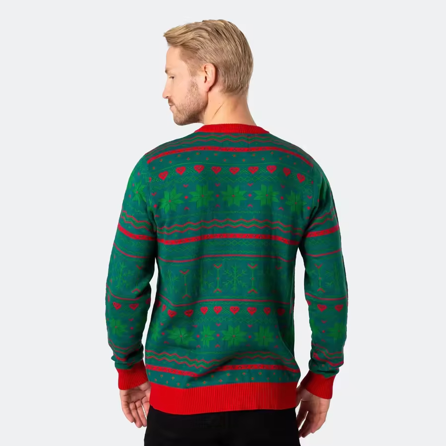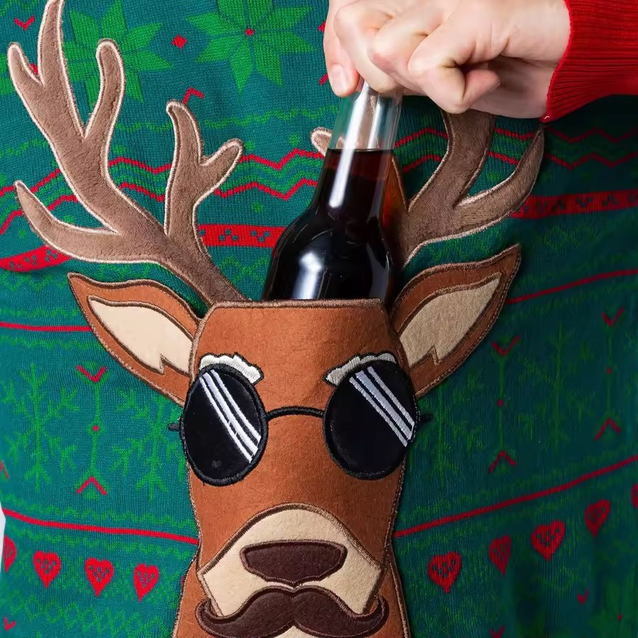 Изготовленный на заказ мужской вязаный уродливый жаккардовый рождественский джемпер, модный пуловер с карманами в виде зеленого оленя, свитер