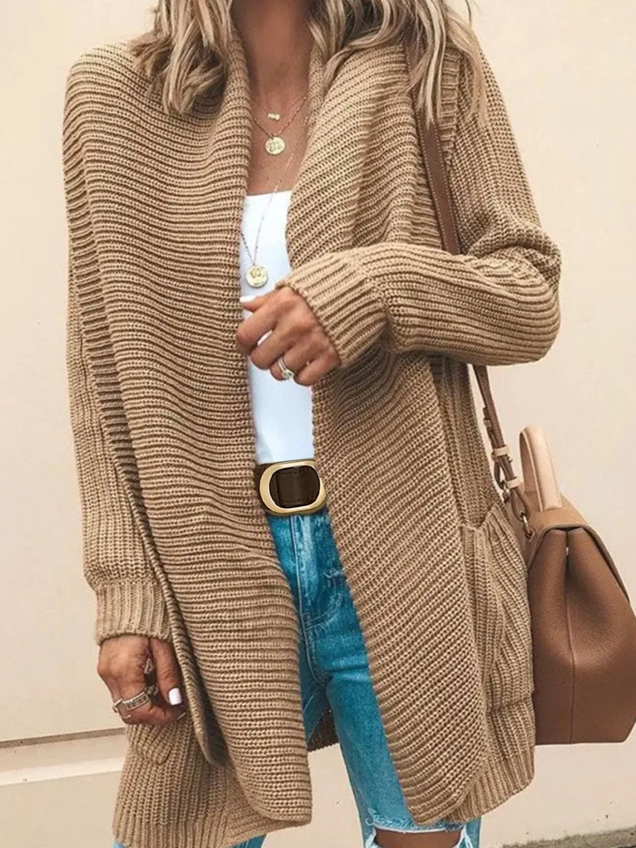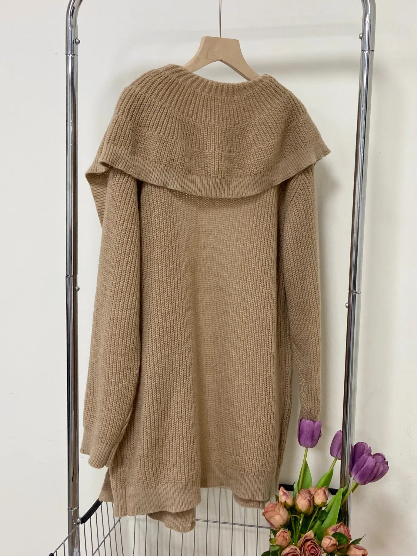 Женский кардиган с длинными рукавами на осень и зиму, Удобный и пушистый, одноцветное изделие, Повседневный стиль, Свитер с большим воротником.