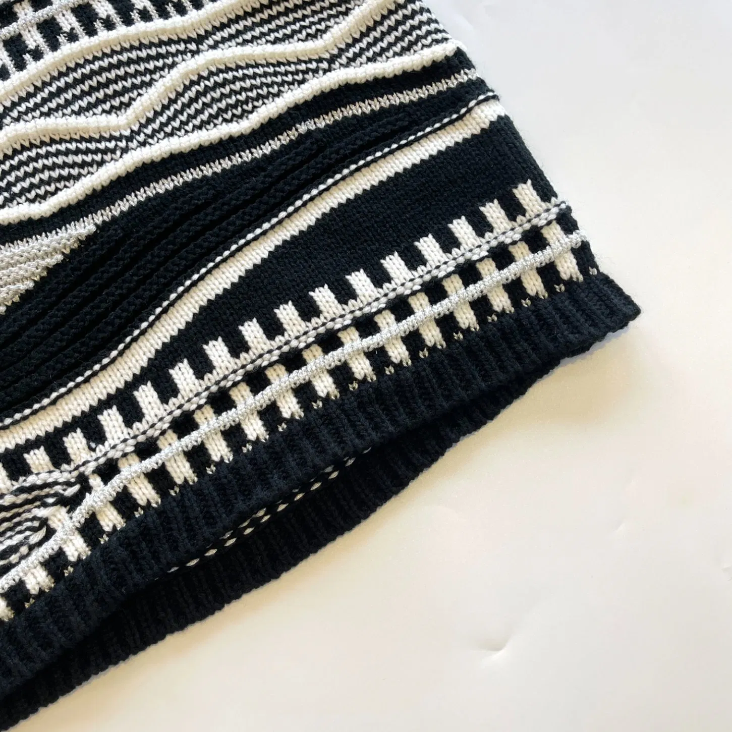 Классический женский вязаный пуловер-свитер в винтажном стиле с цветными блоками в стиле ретро