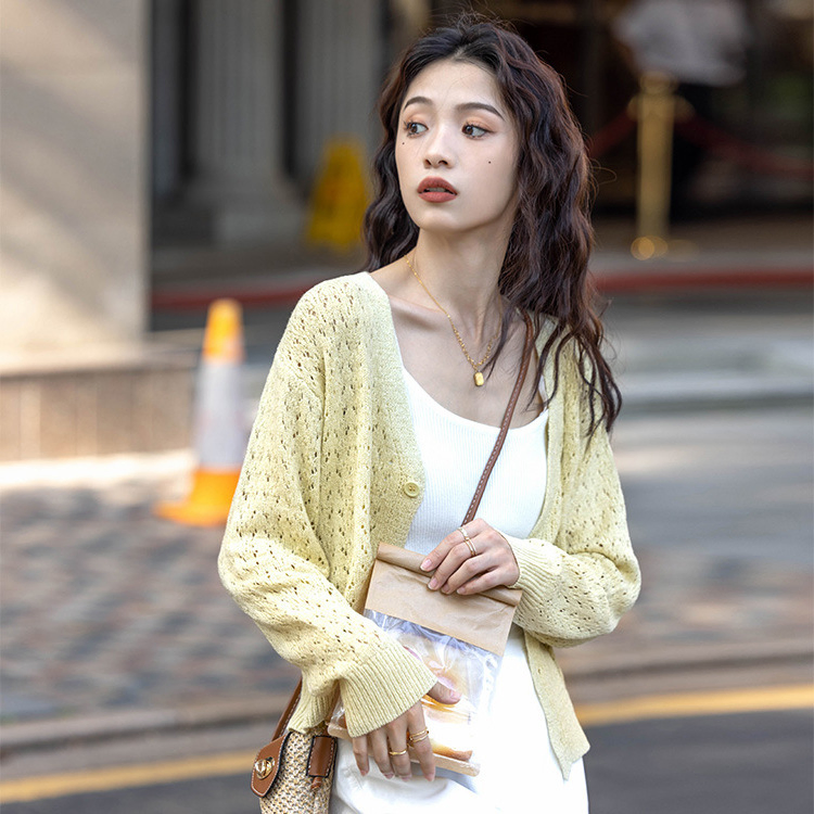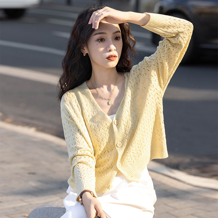Производители трикотажа Изготовляют на заказ Модный женский кардиган с длинным рукавом, связанный крючком крючком