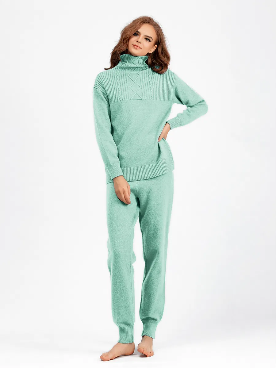 Повседневные свободные осенне-зимние мягкие трикотажные брюки, женский костюм с высоким воротом, теплый уютный классический свитер, комплект