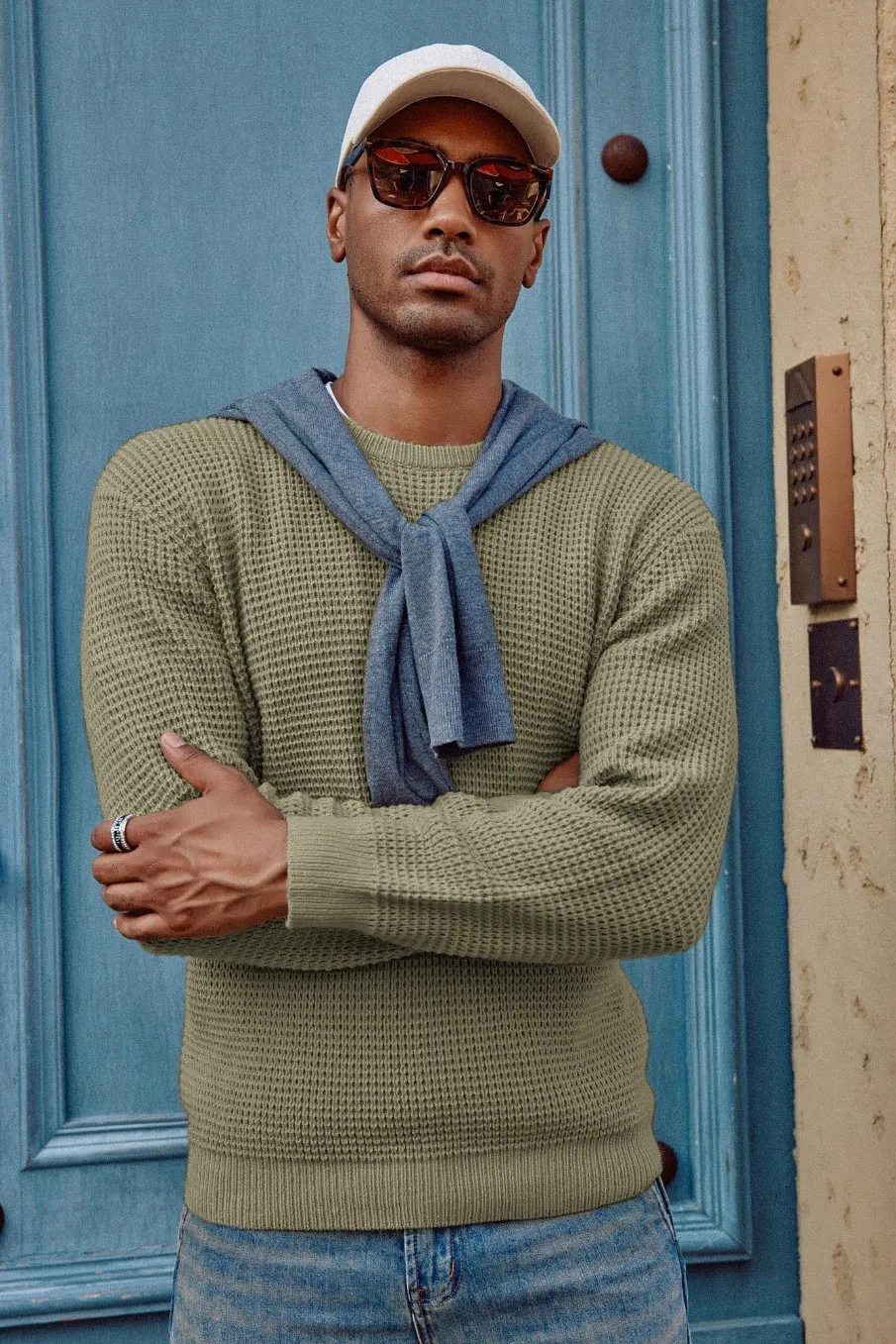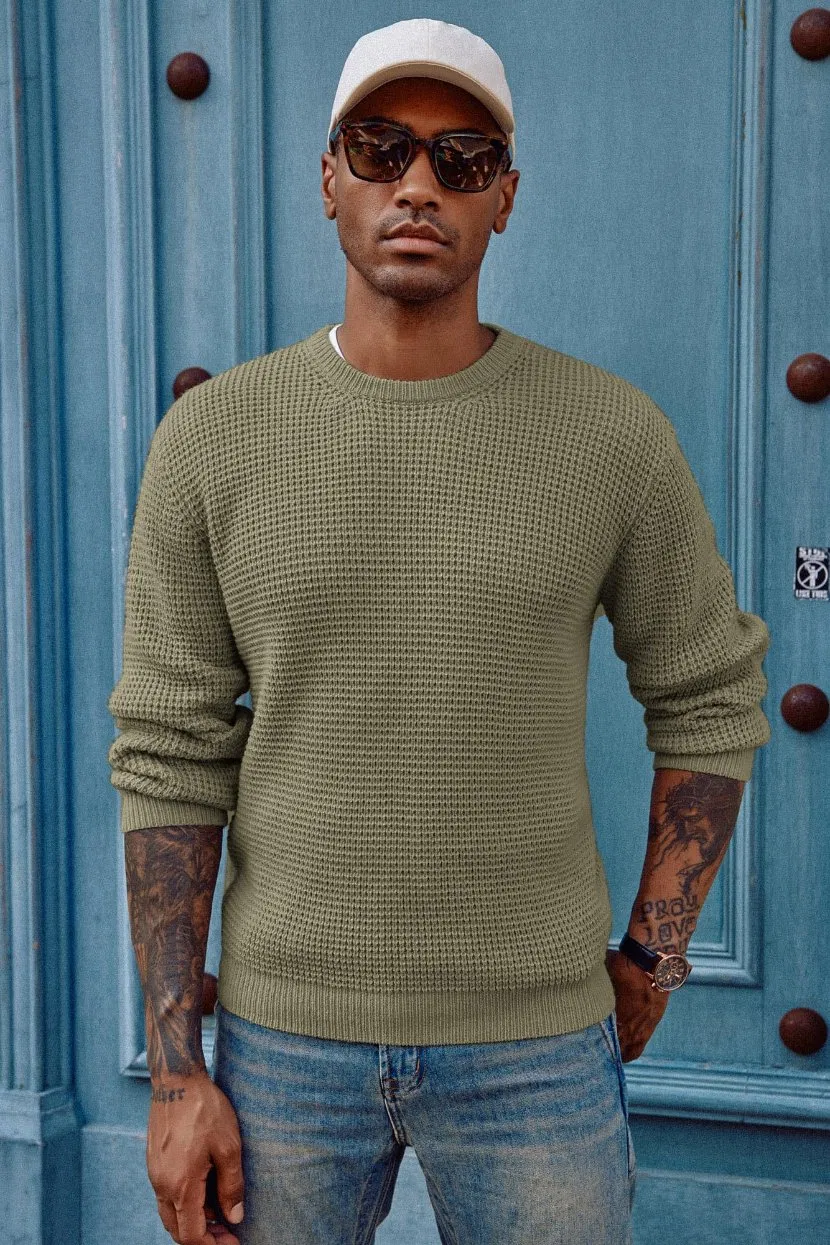 Фабрика одежды изготовила по индивидуальному заказу мужской пуловер с круглым вырезом, свитер с вафельной текстурой, вязаные свитера с длинным рукавом