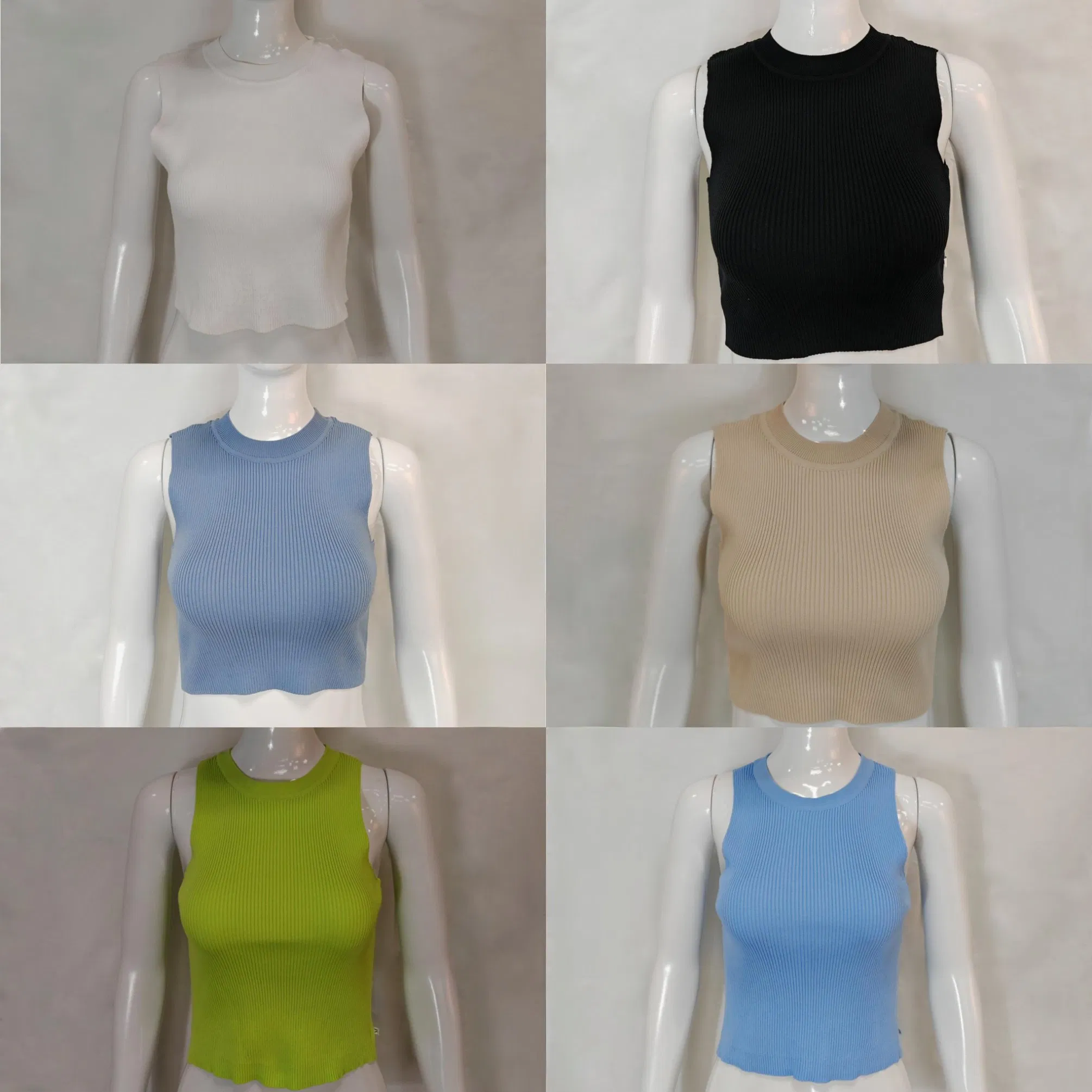 Лидер продаж, модная повседневная женская майка без рукавов с круглым вырезом, летняя спортивная майка без косточек, укороченные топики