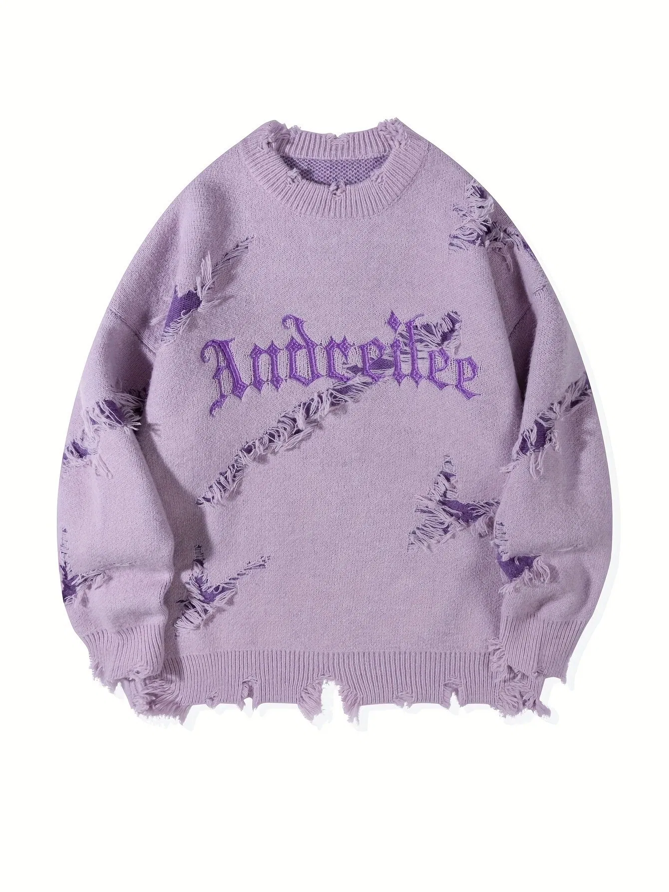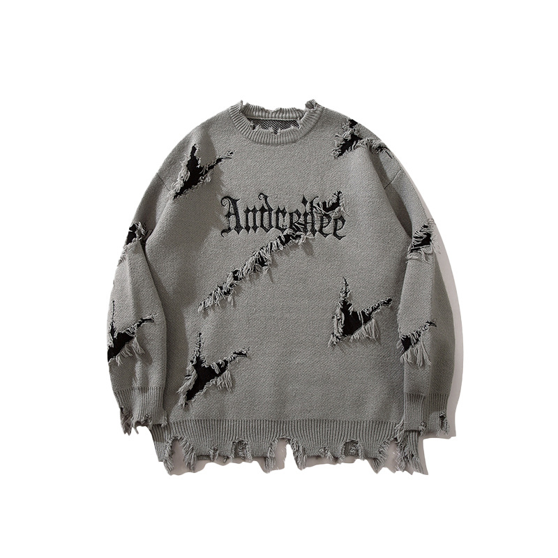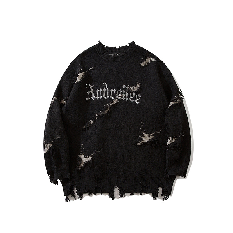 Осенние свитера с дырками, жаккардовый пуловер с круглым вырезом, вязаный свитер большого размера для мужчин и женщин