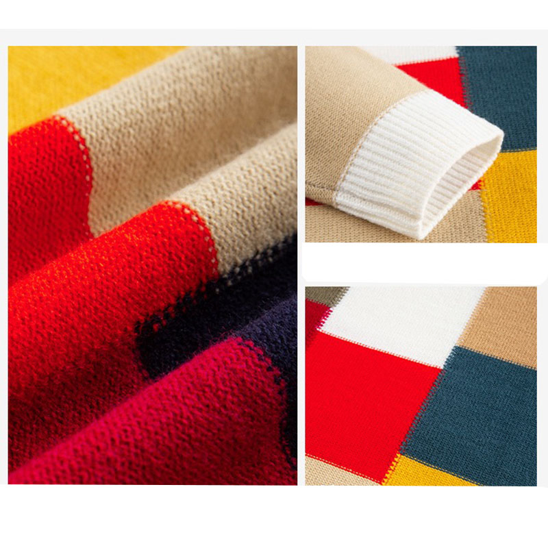 Мужской зимний вязаный джемпер с длинными рукавами и круглым вырезом из цветного блочного жаккарда prime