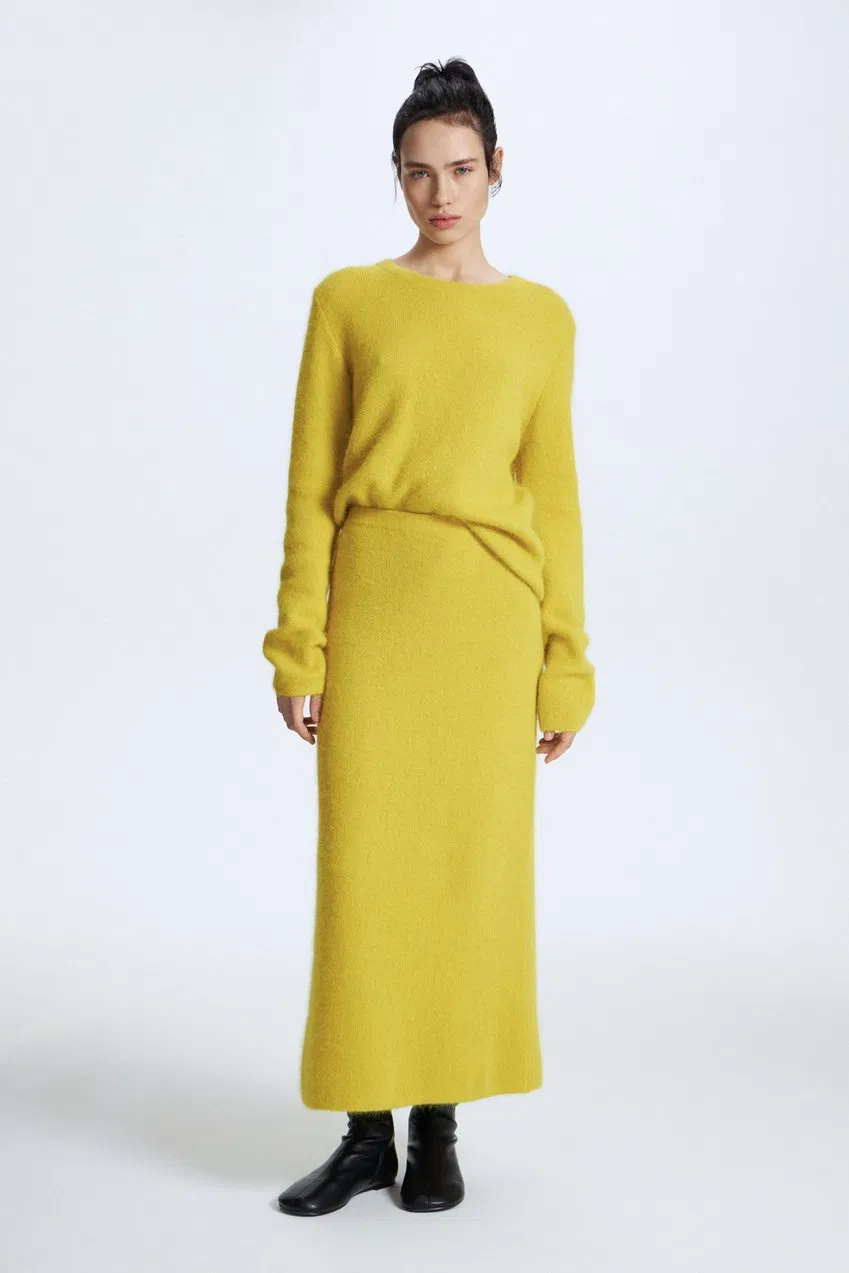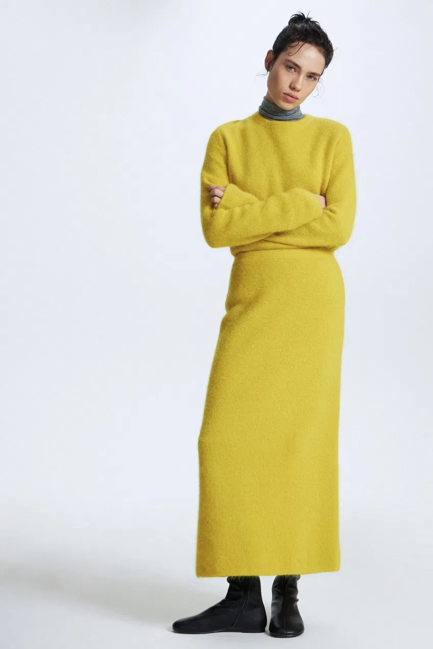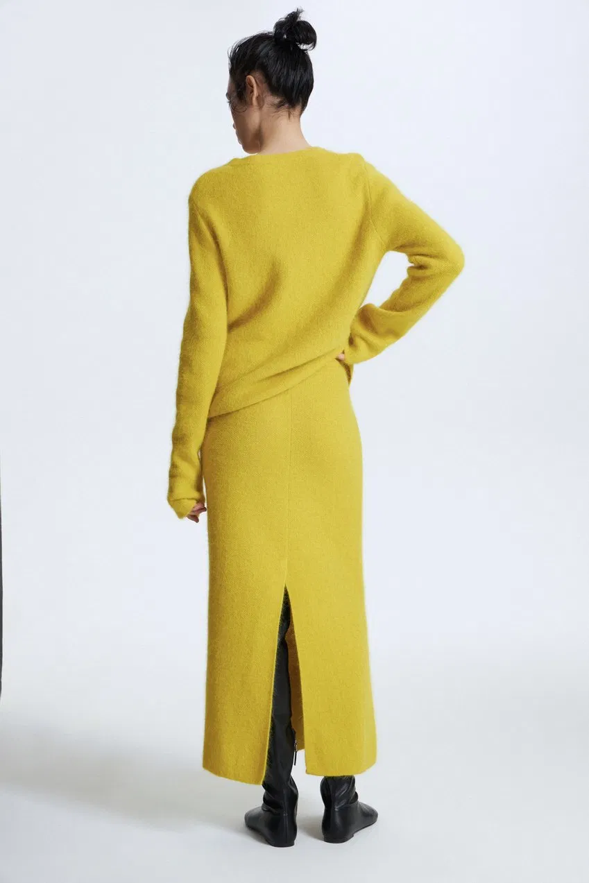 Женский приталенный кардиган-свитер оптом высокого качества по индивидуальному заказу, комплект из двух предметов с длинной юбкой, женский свитер из смеси ангоры
