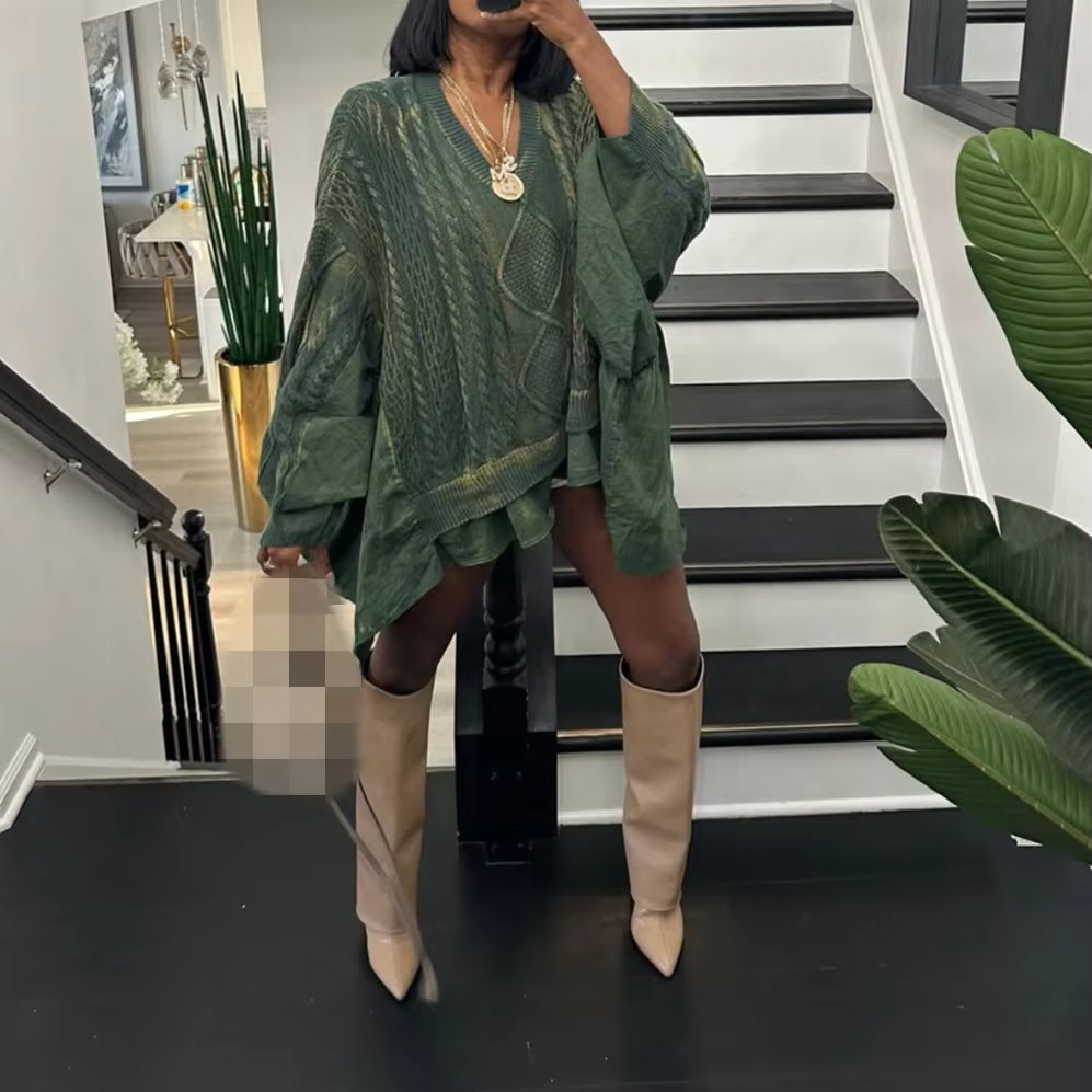 Нерегулярная леди Женский свитер-рубашка Топ лоскутный пуловер Длинный вязаный кашемировый свитер