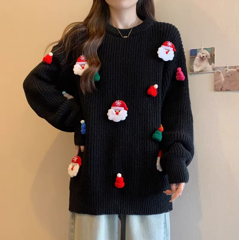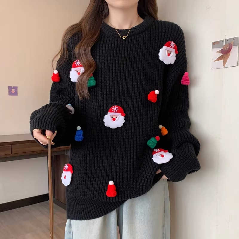 Пуловер с круглым вырезом, Уродливый Лось, снежинка, Счастливого Рождества, женская свободная одежда для девочек, вязаные топы, женские рождественские свитера