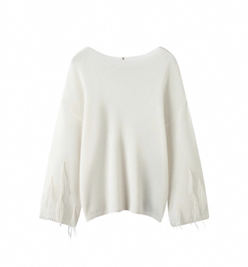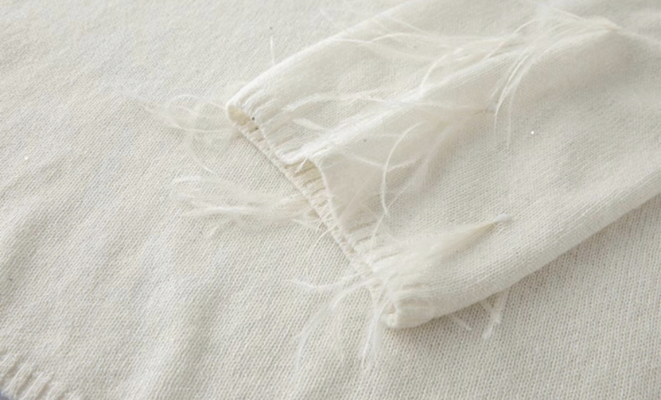 Свитер из чистого кашемира с круглым воротом, украшенный ручной вышивкой бисером