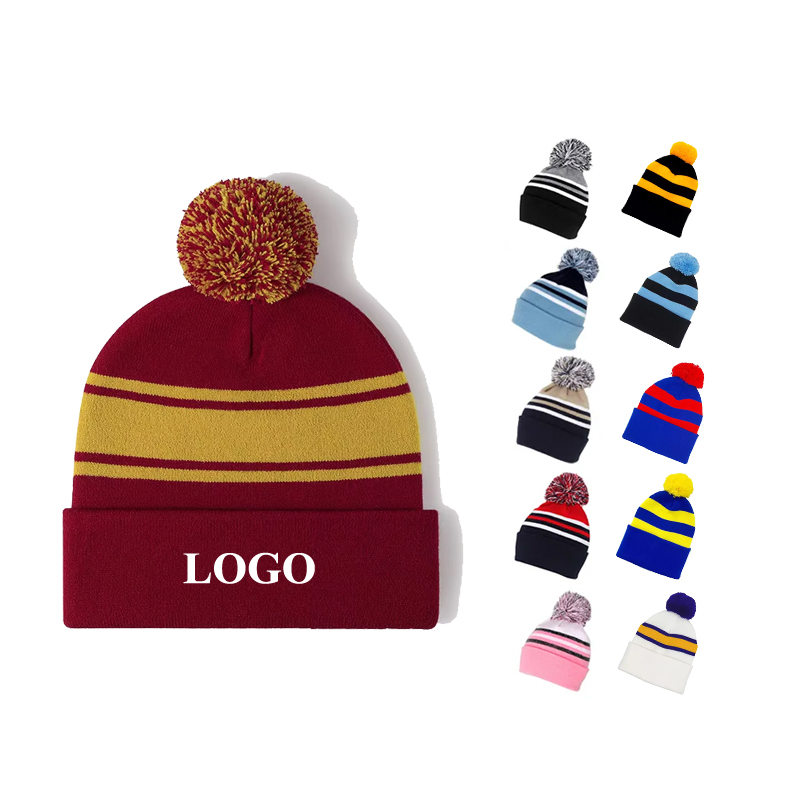 Вышивка пользовательского логотипа оптом Роскошных зимних вязаных шапок с напуском Beanie.